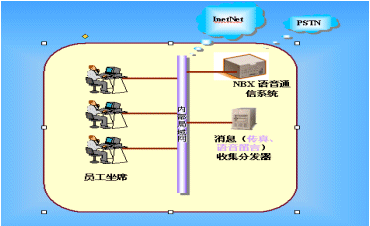 3Com NBX系統(tǒng)構(gòu)建了一個(gè)以個(gè)人電子郵箱為最終溝通手段的統(tǒng)一消息平臺(tái)。也就是說,我們將來自外界的各種消息(如:傳真、語音留言、Email等)都統(tǒng)一發(fā)送到您的個(gè)人電子郵箱中。您可以利用OutLook、Foxmail等通用客戶端郵件軟件接收對(duì)應(yīng)個(gè)人的各類信息,并可對(duì)各類信息進(jìn)行相應(yīng)的處理與編輯。