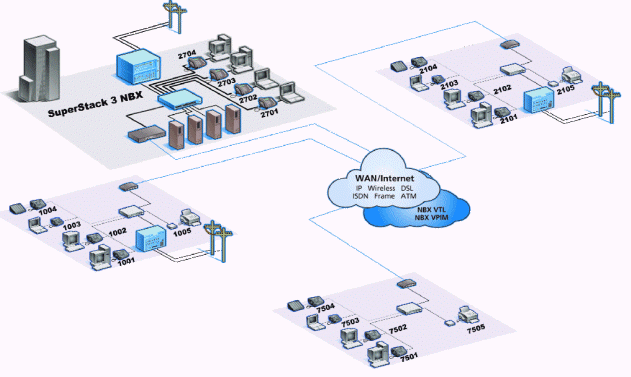 內(nèi)部兩網(wǎng)合一:管理、維護(hù)、升級(jí)方便靈活NBX網(wǎng)絡(luò)呼叫中心的核心是3Com公司的NBX網(wǎng)絡(luò)電話交換機(jī),它具有PBX的功能,支持多種外線接入方式,呼入的語音信號(hào)轉(zhuǎn)換為數(shù)據(jù)包,在局域網(wǎng)內(nèi)部傳輸,實(shí)現(xiàn)局域網(wǎng)內(nèi)部語音、數(shù)據(jù)的統(tǒng)一。