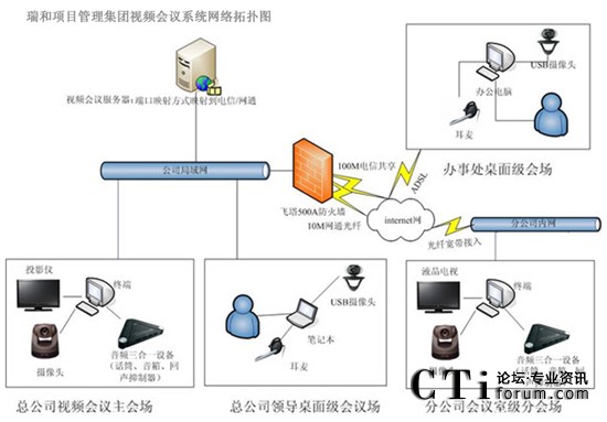 瑞和項目管理集團網(wǎng)絡(luò)基礎(chǔ)建設(shè)以后,各個分支機構(gòu)通過ADSL接入到互聯(lián)網(wǎng),一般每個分支單位大約5人左右,負(fù)責(zé)1個省的業(yè)務(wù)。在現(xiàn)有的網(wǎng)絡(luò)基礎(chǔ)上構(gòu)建了XView迅流視頻系統(tǒng),來滿足各地之間的溝通需求,系統(tǒng)的大范圍使用大大的提高辦公效率,節(jié)省時間及會議成本。隨著各部門遠(yuǎn)程通信需求日益增多,充分發(fā)揮現(xiàn)有網(wǎng)絡(luò)優(yōu)勢,根據(jù)瑞和項目管理集團實際規(guī)模,對XView迅流視頻會議系統(tǒng)進(jìn)行擴容到全國50個重點分支,改造以后XView迅流視頻會議系統(tǒng)作為公司主要通訊手段。實現(xiàn)各個分公司、辦事處充分應(yīng)用網(wǎng)絡(luò)視頻會議系統(tǒng)進(jìn)行音頻、視頻和數(shù)據(jù)的多方溝通,提高辦公效率。