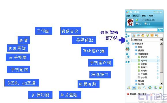 - 企業(yè)人性化的應(yīng)用:我的部門、常用聯(lián)系人、工作組支持、消息廣播