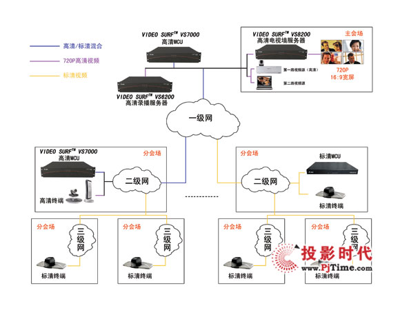 天地陽光通信技術(shù)(北京)有限公司全新推出VIDEO SURFTM 系列全線高清產(chǎn)品,其中高清視頻會議多點(diǎn)控制單元MCU,通過專門為級聯(lián)會議推出的業(yè)內(nèi)獨(dú)創(chuàng)的互控級聯(lián)模式,解決了上述用戶需求問題。通過級聯(lián)方式極大地擴(kuò)充了視頻會議系統(tǒng)的容量,滿足超大型高清視頻會議的需求。通過分上、下級的分級組網(wǎng)方式,滿足用戶分級管理,節(jié)約帶寬等需求。級聯(lián)過程中一個管理員要操作十幾臺MCU,或者十幾臺MCU