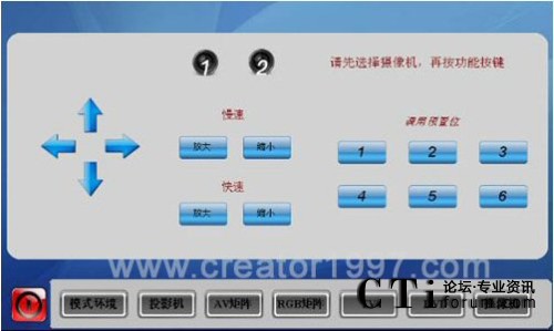CTI論壇(ctiforum)1月25日消息(記者 潘婷):在業(yè)務(wù)不斷攀升的同時(shí),廣東移動(dòng)公司對培訓(xùn)直播室也進(jìn)行了進(jìn)一步的提升,采用了CREATOR快捷的中控系統(tǒng)和矩陣系列產(chǎn)品,其中,中控設(shè)備是CREATOR快捷PGMII型高端中央控制可編程主機(jī),通過無線真彩觸摸屏ST-7600C作為控制媒介,主要控制了矩陣、投影機(jī)、DVD、攝像機(jī)等外圍設(shè)備,對整個(gè)會議室實(shí)現(xiàn)有線全智能人性化控制。通過對矩陣進(jìn)行控制切換信道,實(shí)現(xiàn)了多個(gè)電腦會議信號的快速轉(zhuǎn)換和AV信號的切換。矩陣采用了8*4的RGB矩陣和8*4的AV矩陣,可以方便的對電腦信號和AV信號進(jìn)行簡單的切換。通過紅外發(fā)射棒對DVD和攝像機(jī)進(jìn)行控制,體現(xiàn)了多媒體控制系統(tǒng)的優(yōu)越性,本系統(tǒng)還通過攝像跟蹤的原理來實(shí)現(xiàn)教室直播的錄制。