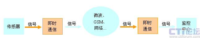 圖2是將遠(yuǎn)程監(jiān)測系統(tǒng)的一種典型建議方案,這種方案是主要用來優(yōu)化監(jiān)控中心的功能。傳感器將信號通過遠(yuǎn)程網(wǎng)絡(luò),直接傳入即時通信的輸入節(jié)點(diǎn)。即時通信可以利用TCP/IP網(wǎng)絡(luò),將數(shù)據(jù)送往監(jiān)控中心,同時也可以根據(jù)策略要求,送達(dá)即時通信多個客戶端,實(shí)現(xiàn)對多人同時報(bào)警的作用。