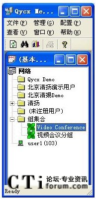 系統(tǒng)已經(jīng)默認(rèn)將這三個(gè)賬戶加入了分組。如上圖所示。 這樣客戶端運(yùn)行起來以后就可以發(fā)起視頻會(huì)議進(jìn)行視頻會(huì)議了,不需要再在服務(wù)器端進(jìn)行任何操作。這三個(gè)賬戶可以隨意的更改密碼、如果不想使用這三個(gè)賬戶名,可以刪除重新建立賬戶名,除此以外,還可以建立新的賬戶,并加入分組。這些操作都是在服務(wù)器端進(jìn)行的。詳細(xì)的操作請(qǐng)參看用戶手冊(cè)或者是FLASH教程。有了用戶名和密碼以后,無論走到哪里,使用任意一臺(tái)電腦登錄自己的帳號(hào),就可以參加會(huì)議,這樣就無需服務(wù)器端總是臨時(shí)變更組成員。