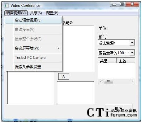 客戶端登錄以后,選擇一臺(tái)配置好的電腦發(fā)起視頻會(huì)議,雙擊組集合下面的組,在打開的對(duì)話框中,點(diǎn)擊[語音視頻]/[啟動(dòng)語音視頻]:
