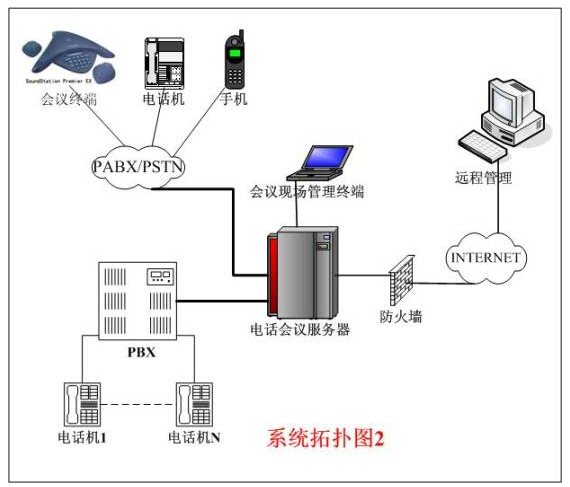整個(gè)系統(tǒng)的拓?fù)浣Y(jié)構(gòu)一般有以上兩種連接方式,拓?fù)浣Y(jié)構(gòu)如上圖所示。圖1中的用戶交換機(jī)直接和公網(wǎng)PSTN或電信交換機(jī)相連。異地與會(huì)者必須先進(jìn)入用戶交換機(jī)后,再進(jìn)入電話會(huì)議主機(jī)。圖2中的連接方式是把電話會(huì)議系統(tǒng)主機(jī)直接和公網(wǎng)PSTN或電信交換機(jī)相連,異地與會(huì)者直接通過公網(wǎng)進(jìn)入電話會(huì)議主機(jī)。