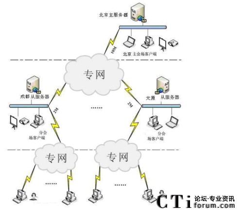根據(jù)北京正大通力鋼管銷售有限公司對(duì)本系統(tǒng)的建設(shè)需要,CNKaran采用DX4000統(tǒng)辦公系統(tǒng)建設(shè)本期工程。傳輸網(wǎng)絡(luò)采用10M專線。整個(gè)系統(tǒng)由控制中心、北京正大通力鋼管銷售有限公司主會(huì)場(chǎng)和7個(gè)省市分會(huì)場(chǎng)組成,在控制中心配置服務(wù)器、投影儀和高清電視機(jī),實(shí)現(xiàn)視頻多輸出源的顯示。通過網(wǎng)絡(luò)管理部門對(duì)系統(tǒng)實(shí)行設(shè)備的統(tǒng)一管理和會(huì)議資源的統(tǒng)一調(diào)度,會(huì)議中心配置切換視頻輸出單元,通過投影儀、液晶電視實(shí)時(shí)監(jiān)看7個(gè)省市分會(huì)場(chǎng)情況,北京正大通力鋼管銷售有限公司和7個(gè)省市分會(huì)場(chǎng)同時(shí)訪問控制中心的服務(wù)器,各分會(huì)場(chǎng)配置一套音視頻的輸入/輸出設(shè)備,7個(gè)省市分會(huì)場(chǎng)分別采用1M、2 M專線和2MADSL等傳輸網(wǎng)絡(luò)接入控制中心。實(shí)現(xiàn)全市的多媒體視頻會(huì)議。