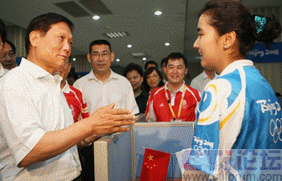 圖一 北京市市委書記、北京奧組委主席劉琪同志奧運(yùn)期間到奧運(yùn)呼叫中心慰問來自呼叫中心行業(yè)的志愿者,感謝志愿者來源單位對(duì)北京奧運(yùn)會(huì)作出的無私貢獻(xiàn)