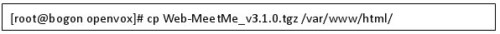 登入到smb服務器,將XP里的Web-MeetMe_v3.1.0.tgz復制到openvox目錄下,然后再將Web-MeetMe_v3.1.0.tgz拷貝到/var/www/html/目錄下,命令如下:
