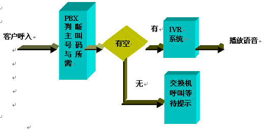呼入一般都先通過(guò)ACD進(jìn)行排隊(duì),然后根據(jù)用戶(hù)選擇進(jìn)入子系統(tǒng),流程圖如下: