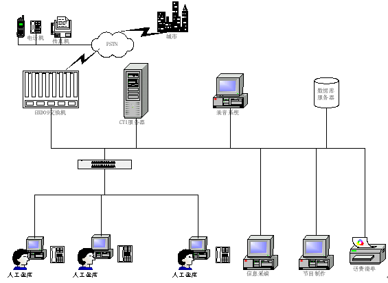 1) 數(shù)據(jù)庫(kù)系統(tǒng): 存放各類(lèi)待查信息數(shù)據(jù)、話(huà)務(wù)統(tǒng)計(jì)數(shù)據(jù)、話(huà)務(wù)員操作明細(xì)數(shù)據(jù)等;