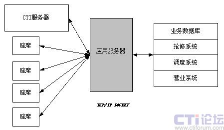 Ο數(shù)據(jù)接口采用三層C/S結(jié)構(gòu),通過構(gòu)建功能強大的應(yīng)用服務(wù)器,把呼叫中心的數(shù)據(jù)流與燃氣公司客戶系統(tǒng)、營業(yè)系統(tǒng)、搶修系統(tǒng)和燃氣調(diào)度系統(tǒng)結(jié)合起來,充分利用了已有系統(tǒng)標(biāo)準(zhǔn)的數(shù)據(jù)接口,實現(xiàn)對后臺數(shù)據(jù)庫的訪問。如圖: