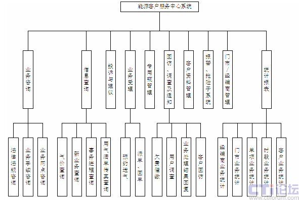 其中,主要功能劃分為:業(yè)務(wù)咨詢、信息查詢、投訴與建議、業(yè)務(wù)受理、專用瓶管理、回訪/調(diào)查/通知、報警/搶險、門市/經(jīng)銷商管理、客戶信息管理以及統(tǒng)計報表等功能。