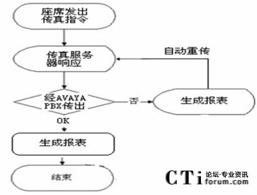 傳真請求是由呼叫中心系統(tǒng)接入,然后再統(tǒng)一分配到座席控制端。進入傳真服務(wù)器的具體方式有兩種,一種是從AVAYA PBX直接進入,另一種是從AVAYA
