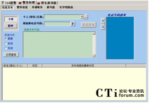 建立在“三臺(tái)合一指揮系統(tǒng)”的基礎(chǔ)上,在調(diào)度指令發(fā)送的同時(shí),建立和保持同一線指揮員和作戰(zhàn)人員的通信聯(lián)系,及時(shí)準(zhǔn)確地將變化情況向有關(guān)領(lǐng)導(dǎo)報(bào)告,確保領(lǐng)導(dǎo)在各種通信設(shè)備條件(手機(jī)、小靈通、辦公電話、家庭電話)下,在第一時(shí)間內(nèi)得到現(xiàn)場(chǎng)信息,極大地減輕了接警員的工作負(fù)擔(dān)。系統(tǒng)具備如下功能: