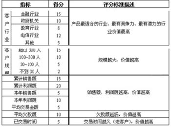根據(jù)設(shè)定的價值指標(biāo)及權(quán)重,我們可以設(shè)置客戶價值等級的區(qū)段。如設(shè)置為四個區(qū)間:VIP客戶(價值得分大于80分)、重要客戶(價值得分大于60分)、普通客戶(價值得分大于40分)、小客戶(價值得分小于40分)等。
