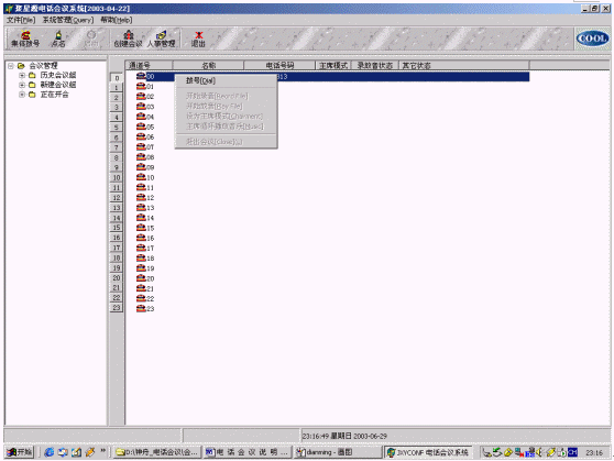2、系統(tǒng)主界面的右邊樹型結(jié)構(gòu)是電話呼出或接入的動(dòng)態(tài)瀏覽器,包括通道號,名稱,電話號碼等等。
