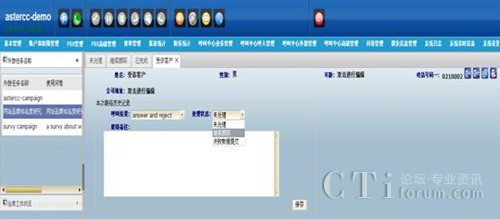 直接進(jìn)入答題界面,接下來就開始針對該用戶進(jìn)行市場問卷的調(diào)研工作。在聯(lián)系人資料中電話號碼后方有呼叫按鈕,只需要摁一下按鈕,配合我們的軟電話系統(tǒng)便會自動撥叫,坐席只需要等待對方的應(yīng)答就可以了。