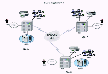 在多點分布式呼叫中心中,要求CTI能夠實現(xiàn)統(tǒng)一呼叫管理和統(tǒng)一路由管理功能。