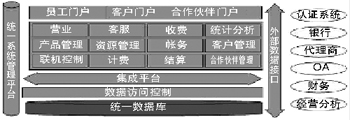 整個系統(tǒng)采用了基于J2EE架構的n層分布式體系結構,同時引入了中間件等技術,實現(xiàn)了用戶界面和業(yè)務處理邏輯之間的分離。軟件設計采用了構件化、參數控制和軟件總線等技術,便于系統(tǒng)擴展,支持新業(yè)務的推出。