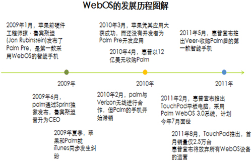 惠普2010年4月收購palm后,推出了一款手機和平板電腦后放棄WebOS