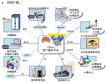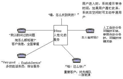基于CTI(電信和計(jì)算機(jī)集成)技術(shù)和call center(呼叫中心)技術(shù)的INtess客戶服務(wù)平臺(tái),積累網(wǎng)上600多套設(shè)備業(yè)務(wù)開(kāi)發(fā)和運(yùn)行實(shí)踐的經(jīng)驗(yàn),運(yùn)用專業(yè)化的設(shè)計(jì),全面解決電信客戶服務(wù)中的難題:
