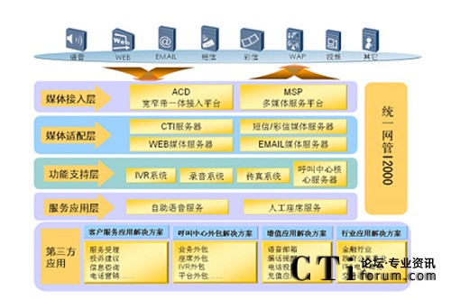 華為多媒體聯(lián)絡(luò)中心系統(tǒng)不僅支持普通語音呼叫的接入,還支持Email、Fax、短信、視頻等多種媒體呼叫接入,以及通過Web方式發(fā)起的護(hù)航瀏覽、點(diǎn)擊通話、文字交談等呼叫的接入,以語音、文字、圖像等多種媒體的組合為客戶提供多通道的服務(wù)。用戶可以同時(shí)通過語音、圖像、文字多種形式與聯(lián)絡(luò)中心的業(yè)務(wù)代表進(jìn)行交互,極大的拓寬了用戶與業(yè)務(wù)代表之間信息交互的空間,提高了信息交互的效率。