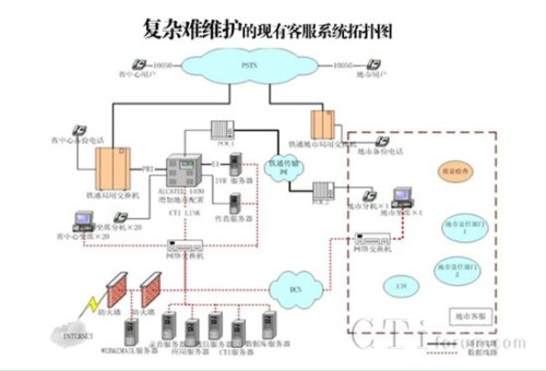 中國(guó)鐵通10050客戶服務(wù)中心,自2002年全國(guó)各省建設(shè)完畢后,一直為鐵通的用戶提供各種業(yè)務(wù)咨詢、故障處理及投訴申告服務(wù)。隨著鐵通用戶數(shù)量的不斷激增,鐵通目前的10050客服中心系統(tǒng)從技術(shù)架構(gòu)、規(guī)模、功能上均無法滿足市場(chǎng)服務(wù)需求,所用的各種核心設(shè)備也基本停產(chǎn),造成了很大的維護(hù)難題。