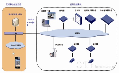 艾諾通信憑借多年的移動(dòng)視頻開(kāi)發(fā)和項(xiàng)目經(jīng)驗(yàn),推出了移動(dòng)視頻監(jiān)控解決方案。該方案采用移動(dòng)視頻接入服務(wù)器與原有監(jiān)控系統(tǒng)互通,將監(jiān)控圖像通過(guò)智能轉(zhuǎn)碼技術(shù)處理,轉(zhuǎn)換成可以在移動(dòng)網(wǎng)絡(luò)上流暢傳送的視頻碼流,最終將圖像呈現(xiàn)在手機(jī)、平板電腦等安裝了視頻監(jiān)控客戶端的移動(dòng)終端上。同時(shí),監(jiān)控中心也可以通過(guò)手機(jī)逆向監(jiān)控。