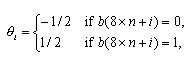 在將g(n)拆成binary形式之后,方法[8]再對每一個(gè)位bi的值作改變,其中0≦i≦7。而其對每一個(gè)位bi值作改變的方法如式(1.2)所示,而b’i代表的為bi被改變之后的值。