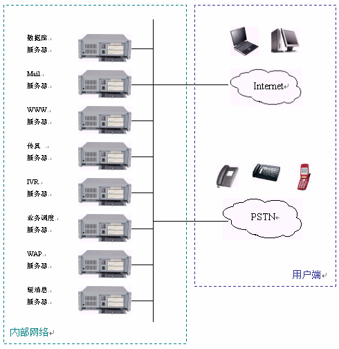 | 8、WAP服務(wù)服務(wù)器 | IPC-810/PS-270/6114P4+FSC-1711VN+P4 2.0G+512M DDR+60G |