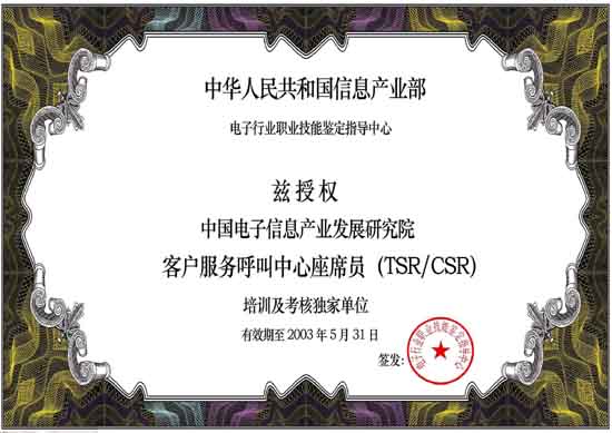 中國(guó)電子信息產(chǎn)業(yè)發(fā)展研究院職業(yè)技能培訓(xùn)部是中國(guó)電子信息產(chǎn)業(yè)發(fā)展研究院旗下專業(yè)從事IT職業(yè)技能培訓(xùn)的機(jī)構(gòu)。呼叫中心職業(yè)技能培訓(xùn)工作是培訓(xùn)中心常年開(kāi)展的主要培訓(xùn)項(xiàng)目。培訓(xùn)中心受信息產(chǎn)業(yè)部委托,負(fù)責(zé)全國(guó)范圍內(nèi)"呼叫中心客戶服務(wù)座席員"的授權(quán)培訓(xùn)及考核工作。既是呼叫中心行業(yè)基礎(chǔ)操作人員培訓(xùn)及考核的權(quán)威機(jī)構(gòu),又是配合行業(yè)管理、全面支撐和提升整個(gè)呼叫中心產(chǎn)業(yè)的服務(wù)機(jī)構(gòu)。