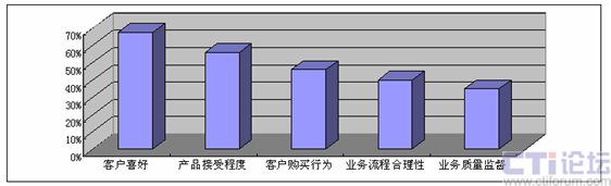 那么保險(xiǎn)企業(yè)希望通過進(jìn)一步深入開展電話中心信息化工作得到哪些效用或者有價(jià)值的信息呢,我們認(rèn)為,電話中心為保險(xiǎn)企業(yè)所提供的信息中最重要的依然是“客戶的聲音”,具體來說,包括客戶喜好和客戶購買行為等,其次便是業(yè)務(wù)流程信息。企業(yè)管理層對(duì)來自電話中心的不同信息的關(guān)注程度如下圖所示。