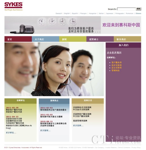CTI論壇(ctiforum)8月8日消息(記者 潘婷婷): 為了更全方位地展現(xiàn)賽科斯中國的公司風(fēng)貌,公司網(wǎng)站(www.sykes.com.cn)經(jīng)改版后于8月4日全新登場。新網(wǎng)站在風(fēng)格、結(jié)構(gòu)、內(nèi)容等方面作了整體改進(jìn),使得整個網(wǎng)站的表現(xiàn)更清晰,界面更友好。