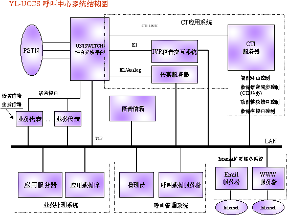 宇龍UCCS綜合呼叫中心系統(tǒng)著眼于為用戶提供一個計算機(jī)電信集成的、統(tǒng)一的服務(wù)平臺,該平臺可完成電話呼入、電話呼出、呼叫數(shù)據(jù)庫處理、語音信箱、人工或自動語音結(jié)果輸出等這一系列的功能服務(wù)及用戶投訴、業(yè)務(wù)咨詢、業(yè)務(wù)受理和廣告宣傳等應(yīng)用服務(wù),主要用于如電信客戶服務(wù)中心、企業(yè)用戶信息反饋系統(tǒng)及業(yè)務(wù)咨詢系統(tǒng)等各項(xiàng)具體業(yè)務(wù)。