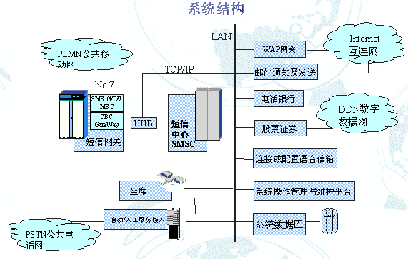 。 開(kāi)放式系統(tǒng)接口。通過(guò)SMPP接口可方便地增加各種ESME,實(shí)現(xiàn)新的信息服務(wù)。
