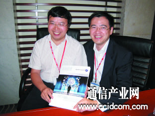 圖為上海貝爾阿爾卡特業(yè)務(wù)通信系統(tǒng)有限公司總裁施曉明(右)和首席信息官朱戰(zhàn)備(左)