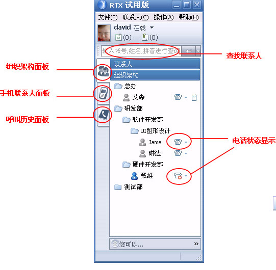 OmniRTX插件實(shí)現(xiàn)了在RTX界面上,直接對企業(yè)內(nèi)部電話終端進(jìn)行基本呼叫業(yè)務(wù)和電話增值業(yè)務(wù)的控制、設(shè)置和管理,更加方便的提供了企業(yè)內(nèi)部員工之間的交流,進(jìn)一步改善企業(yè)與客戶之間的溝通渠道,所有的溝通和交流不再受時間、空間的限制,更高質(zhì)量的解決了企業(yè)在語音、文字、圖片以及視頻等多方面的效率問題!