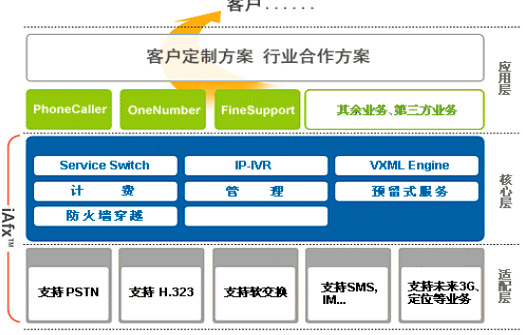 。。"iAfxTM"是一個融合語音、圖像、消息、多媒體數(shù)據(jù)的分布式通信應用架構,為業(yè)務處理和應用開發(fā)提供了全新的概念和良好的環(huán)境,它既充分考慮了對現(xiàn)階段運營商網(wǎng)絡和基礎構架的支持,又兼顧了網(wǎng)絡和通信技術向下一代發(fā)展的必然趨勢;趇AfxTM架構,F(xiàn)INESUPPORT®IP呼叫中心既能適應現(xiàn)有網(wǎng)絡環(huán)境,又能向下一代網(wǎng)絡(NGN)平滑過渡。