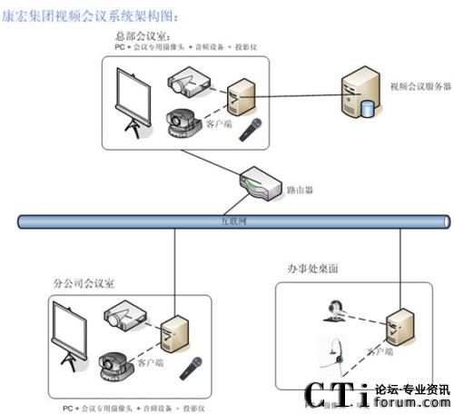 康宏集團總部擁有100M光纖接入,每個分公司擁有10M光纖接入,每個辦事處為1M或2M ADSL接入。V2 Conference視頻會議系統(tǒng)以康宏集團目前的網(wǎng)絡(luò)為基礎(chǔ),部署和實施該多媒體會議系統(tǒng),實現(xiàn)一個可進行音頻、視頻和數(shù)據(jù)的多方位交互平臺。