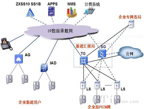 該方案適合于新建的廠區(qū),或者準(zhǔn)備將舊有程控交換機一次性進(jìn)行替換的大型本地企業(yè)。