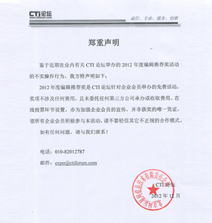 3. 充分利用CTI論壇及合作媒體的優(yōu)勢,廣泛聽取來自業(yè)內(nèi)人士和廣大用戶的意見和建議。