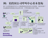 ---- 圖示是一個由德勤咨詢公司為一全球性客戶提出的呼叫中心建議,呼叫中心經(jīng)常需要這樣復雜的一個技術平臺和基礎支持才可能實現(xiàn)快速的來電和去電處理。
