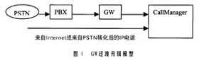 比較有代表性的解決方案有兩種,一種是效仿圖1的做法,在ACD的用戶側加入VoIP網(wǎng)關,再統(tǒng)一接入(如圖4所示);另一種方法是采用價格比較便宜的IP座席卡,并在Call Manager中加入CTI的有關協(xié)議模塊(如圖5所示)。