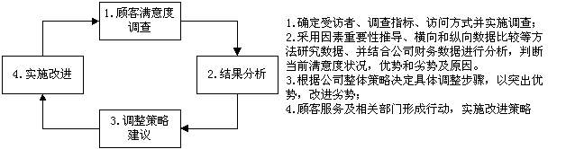 顧客滿意度調(diào)查和客戶投訴和建議處理系統(tǒng)、神秘顧客調(diào)查、流失客戶分析是當(dāng)前企業(yè)收集客戶意見的四種主要方法。其中,顧客滿意可以運用幾種方法衡量。它可以通過詢問直接衡量:“請按下面的量度說出你對某服務(wù)的滿意程度:很不滿意、不太滿意、一般、比較滿意、很滿意”(直接報告滿意程度)。還可以要求受訪者評價他們期望一個什么樣的產(chǎn)品屬性,以及他們實際得到的是什么(引申出來的不滿意)。另外一種方法是要求受訪者列出他們在產(chǎn)品上發(fā)現(xiàn)的任何問題和他們能建議的任何改進措施(問題分析)。最后,公司可以要求受訪者按產(chǎn)品各要素的重要性不同進行排列,并對組織在每個要素上的表現(xiàn)作出評價(重要性/績效等級排列)。最后一種方法可以幫助公司了解它是否在一些重要的要素方面表現(xiàn)不佳,或在一些相對不重要的要素方面過于投入。而且,研究顯示,在收集有關(guān)顧客滿意的信息時,詢問顧客再次購買和再次推薦的問題,也是十分有價值的,它們共同構(gòu)成了顧客滿意度調(diào)查指標(biāo)。