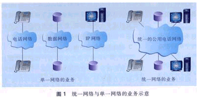 技術(shù)上的融合與結(jié)合是指中繼線、交換機(jī)、有線鏈路、無線鏈路、客戶設(shè)備等可承載各種類型的業(yè)務(wù)。