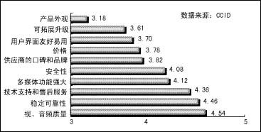 CCID對(duì)視頻會(huì)議現(xiàn)狀調(diào)查結(jié)果顯示,與以往相比,用戶對(duì)視頻會(huì)議終端系統(tǒng)的選擇標(biāo)準(zhǔn)已經(jīng)發(fā)生了變化。用戶除了一如既往地要求很好的音視頻質(zhì)量外,對(duì)產(chǎn)品的穩(wěn)定可靠性、技術(shù)支持和售后服務(wù)、多媒體功能、安全性四項(xiàng)也有要求。其中,用戶對(duì)視頻會(huì)議終端系統(tǒng)的多媒體功能和設(shè)備的可拓展升級(jí)提出了更高的要求,而不再局限于視音頻質(zhì)量和穩(wěn)定、可靠性上,對(duì)多媒體功能的需求在不斷地增長。更多的用戶不僅把會(huì)議系統(tǒng)用于視音頻開會(huì),更將視頻會(huì)議的多媒體功能作為采購的重要指標(biāo)之一。