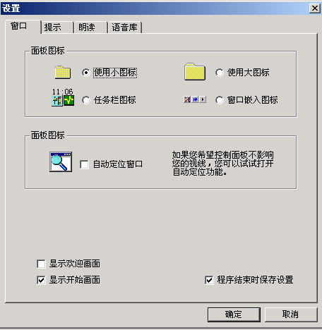如果需要進(jìn)一步的調(diào)整,可以選擇菜單里的“設(shè)置……”。打開(kāi)設(shè)置窗口(如圖3)。窗口共分四個(gè)選項(xiàng),每個(gè)選項(xiàng)里除了剛介紹的幾種常用功能調(diào)整外,還可以控制歡迎畫(huà)面、開(kāi)始畫(huà)面、設(shè)定存儲(chǔ)等功能,規(guī)定提示速度、朗讀速度的快慢,選擇提示方式,設(shè)定提示報(bào)警條件。在“語(yǔ)音庫(kù)”選項(xiàng)中還可以選擇朗讀為男聲還是女聲。單擊“設(shè)置”按鈕,可以根據(jù)具體需要選擇“鍵盤(pán)”或“中文”里被朗讀標(biāo)點(diǎn)符號(hào)的種類(如圖4)。
