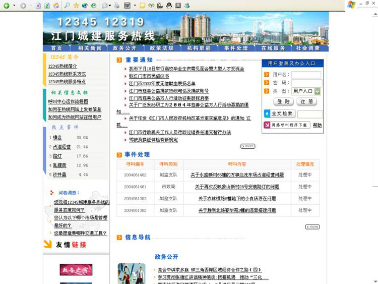 附圖二 江門“12345”城建服務(wù)熱線系統(tǒng)首頁圖