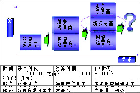 目前多數(shù)集成商都是采用國(guó)際通信界最為先進(jìn)的ITU-T(國(guó)際電信聯(lián)盟電信標(biāo)準(zhǔn)化部門(mén))H.323(基于數(shù)據(jù)包的多媒體通信系統(tǒng))、SIP(初始會(huì)話(huà)協(xié)議)、Soft Switch(軟交換)、3G、IPv6等技術(shù)進(jìn)行系統(tǒng)構(gòu)筑,全面融合先進(jìn)的語(yǔ)音、數(shù)據(jù)及移動(dòng)通信IP一體化解決方案,從而為企業(yè)提供不同需求層次的選擇。另外,由此導(dǎo)致產(chǎn)業(yè)結(jié)構(gòu)也悄悄地發(fā)生變化,產(chǎn)業(yè)朝三層級(jí)和多層級(jí)演變通信的新結(jié)構(gòu)和新角色:服務(wù)運(yùn)營(yíng)商的誕生,網(wǎng)絡(luò)運(yùn)營(yíng)商向服務(wù)提供商的轉(zhuǎn)型。 新運(yùn)營(yíng)商是通信產(chǎn)業(yè)的新角色,新運(yùn)營(yíng)商象征著 IP 通信時(shí)代的到來(lái),新運(yùn)營(yíng)商成為驅(qū)動(dòng)產(chǎn)業(yè)發(fā)展的重要角色。